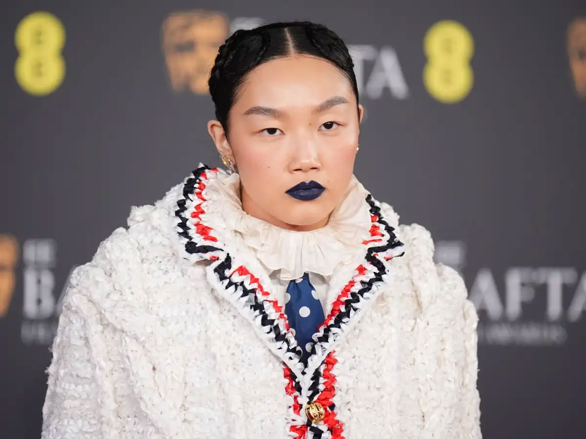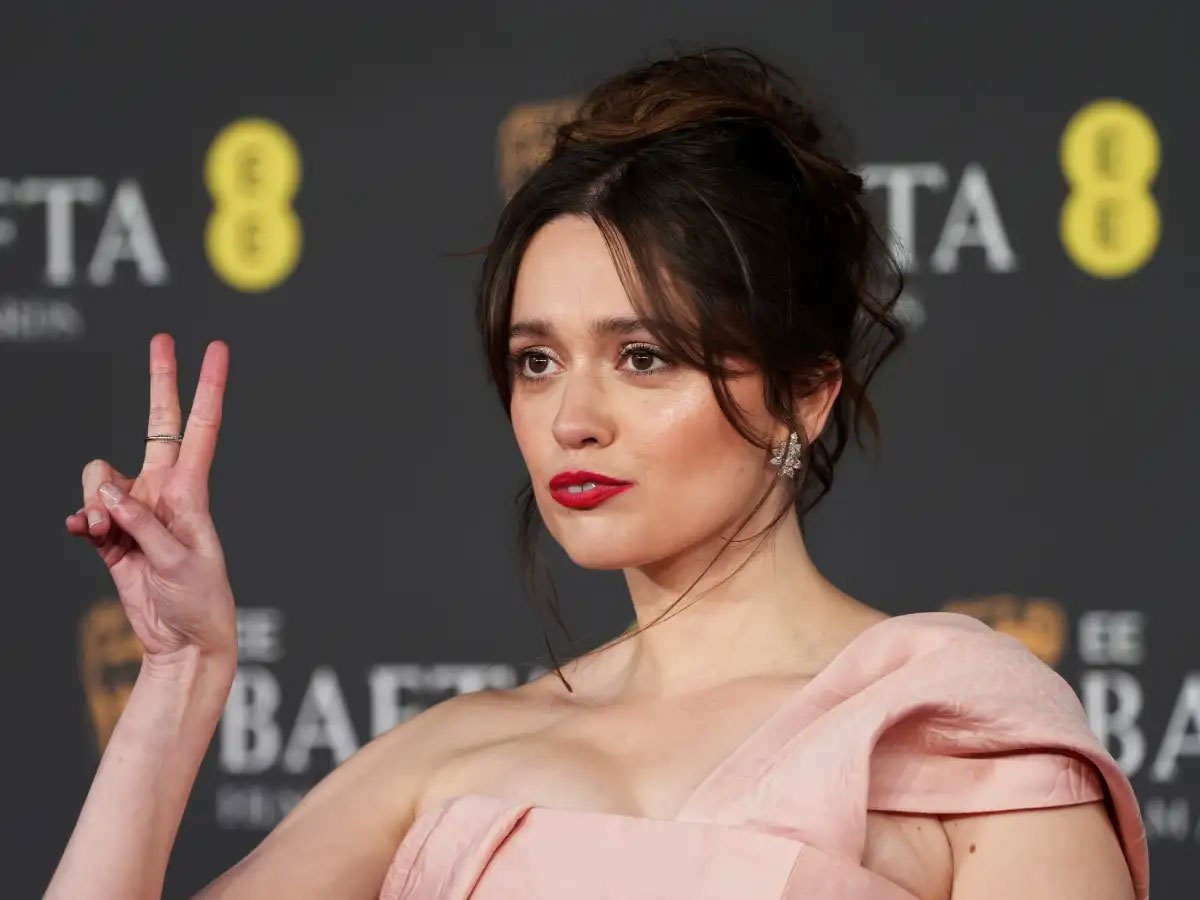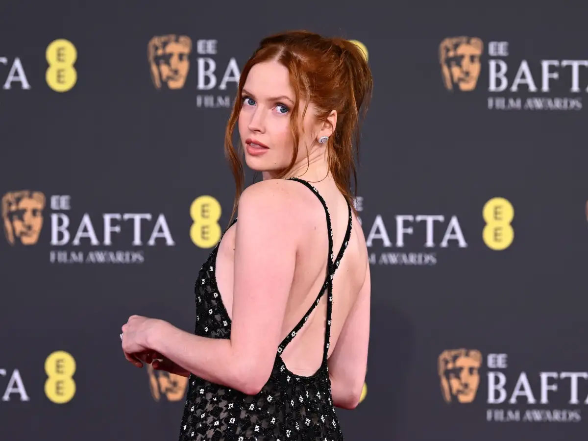 Aimee Lou Wood: Old Hollywood στυλ με έξτρα όγκο στην κορυφή και τέλειες curtain bangs που ολοκληρώνουν το glamorous αποτέλεσμα.
