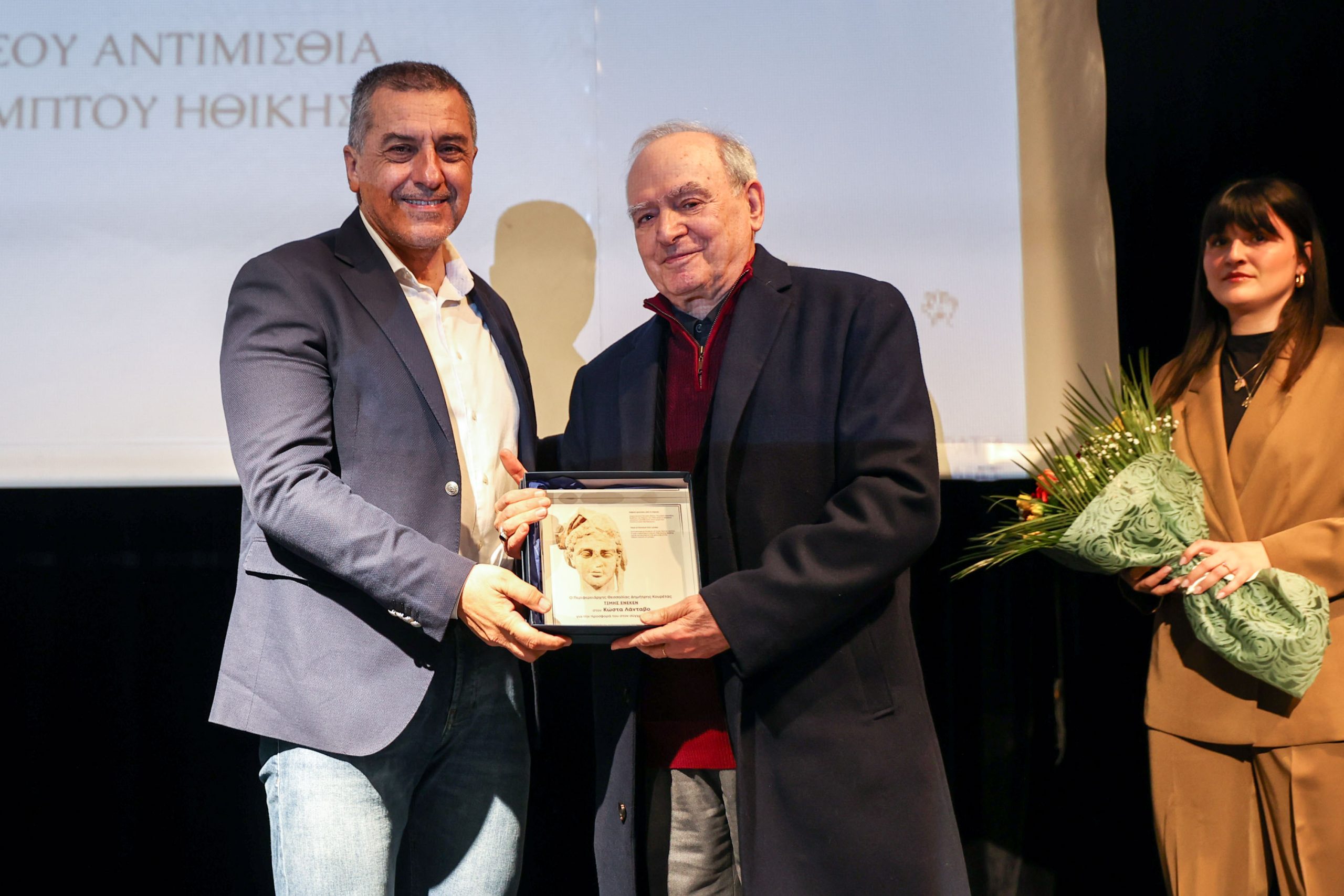 Μετά την παρουσίαση του προγραμματισμού για το 2026 ακολούθησε η βράβευση από τον Περιφερειάρχη Θεσσαλίας Δημήτρη Κουρέτα σημαντικών προσωπικοτήτων των γραμμάτων και των τεχνών, οι οποίοι με το έργο και τη διαδρομή τους έχουν συμβάλει ουσιαστικά στην πνευματική και καλλιτεχνική ζωή της Θεσσαλίας και της χώρας και συγκεκριμένα των κ.κ. Κώστα Λάνταβου, ιατρού και ποιητή, Νίκου Παπαθεοδώρου, ιστοριοδίφη και συλλέκτη, Χρήστου Παπανικολάου, εικαστικού και Βεατρίκης (Μπέττυ) Σαΐας – Μαγρίζου, συγγραφέα. Η βράβευση έγινε στο πλαίσιο του ετήσιου θεσμού τιμητικής βράβευσης προσωπικοτήτων του πολιτισμού που θεσμοθετείται για πρώτη φορά φέτος στα πλαίσια της πολιτιστικής στρατηγικής της Περιφέρειας Θεσσαλίας για την ανάδειξη ανθρώπων που έχουν συμβάλει ουσιαστικά στη διαμόρφωση της πολιτιστικής ταυτότητας της Θεσσαλίας.