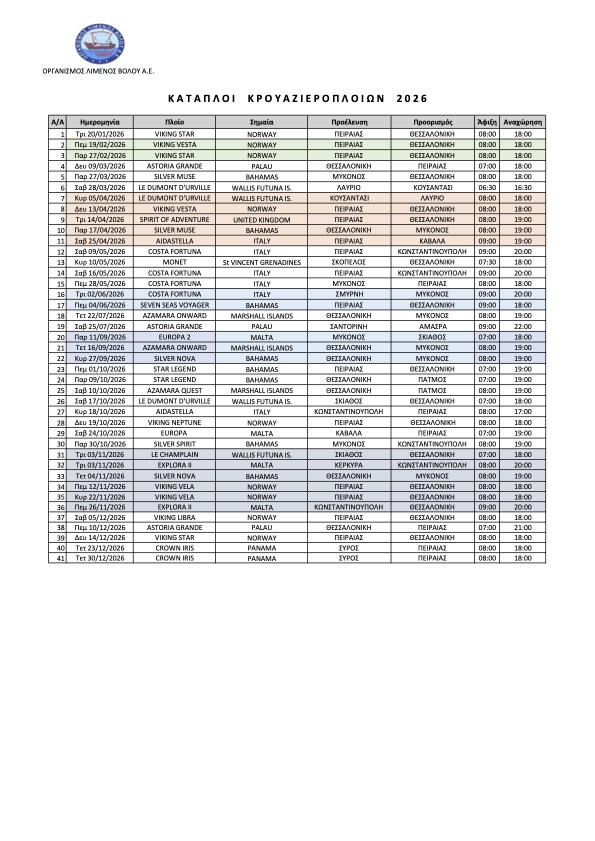 Ωστόσο, η ένταση στη Μέση Ανατολή έχει επηρεάσει τον προγραμματισμό των διεθνών εταιρειών κρουαζιέρας, που έχουν οδηγηθεί σε αλλαγές δρομολογίων και σε ακυρώσεις προσεγγίσεων. Μία περιοχή που αναμένεται να πληγεί είναι και η Ανατολική Μεσόγειος στην οποία ανήκει και το λιμάνι του Βόλου. Παρακολουθούμε στενά τις διεθνείς εξελίξεις και παραμένουμε αισιόδοξοι ότι, με τη σταθεροποίηση της κατάστασης, η κρουαζιέρα θα επανέλθει δυναμικά και οι όποιες ακυρώσεις, επανεξεταστούν στις νέες βάσεις που θα έχουν δημιουργηθεί γεωπολιτικά. Σε κάθε περίπτωση, ο Οργανισμός Λιμένος Βόλου συνεχίζει να εργάζεται συστηματικά προς αυτή την κατεύθυνση».