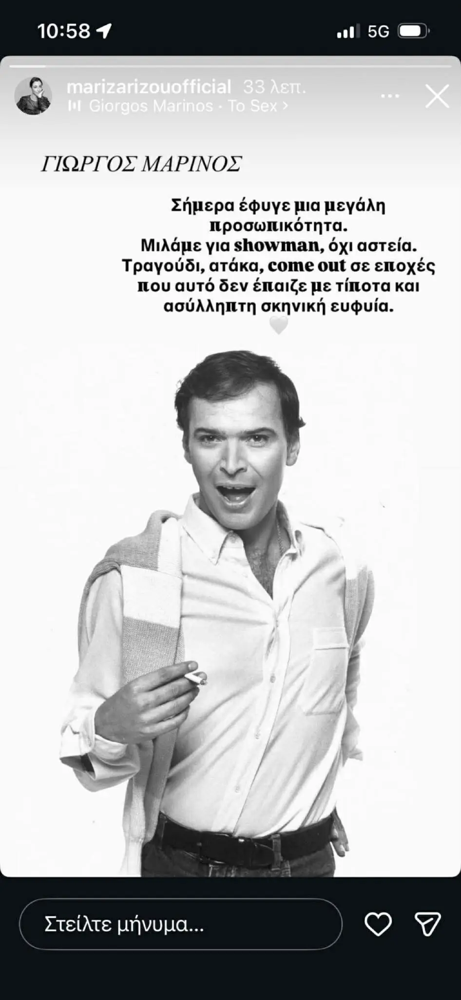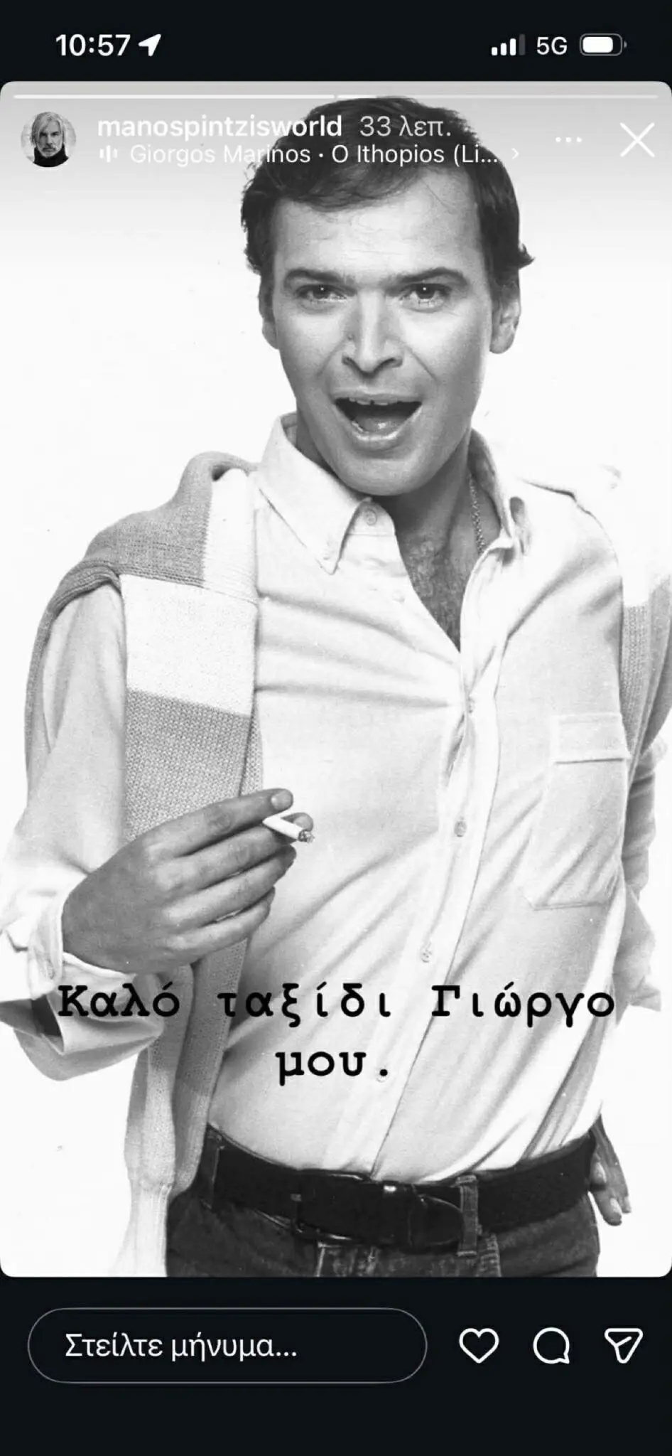 Ο ηθοποιός Μάνος Πίντζης αρκέστηκε σε μία πιο λιτή ευχή, με μεγάλο όμως νόημα. «Καλό ταξίδι Γιώργο μου».