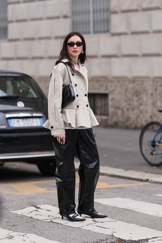 Το εμβληματικό Bar Jacket, που δημιούργησε ο Christian Dior, επιστρέφει δυναμικά στις εμφανίσεις του street style. Με τη δομημένη γραμμή και τη θηλυκή του σιλουέτα, αποτελεί μια πιο ιδιαίτερη εναλλακτική αντί για την κλασική καμπαρντίνα.