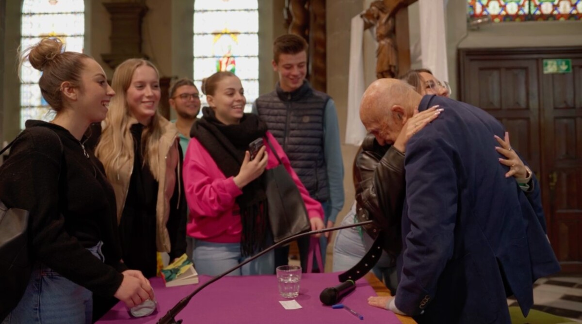 Αυτός ο άνθρωπος, στη διάρκεια του lockdown άνοιγε το παράθυρό του και έπαιζε στις Βρυξέλες πιάνο, για να δώσει θάρρος στη γειτονιά και μαζευόταν η γειτονιά, γιατί δεν είχε που να πάει και εγώ θέλησα να πάω να τον δω για να τον γνωρίσω. Δεν ήξερα τίποτα για την ιστορία του. Είχε γράψει μια βελγική εφημερίδα ότι ήταν επιζών του Ολοκαυτώματος, αλλά χωρίς λεπτομέρειες, χωρίς την υπόθεση με το τρένο που τον έσπρωξε η μάνα του και τα λοιπά και πήγα και συνάντησα έναν εξαιρετικό άνθρωπο που έχει τη δική του μπάντα τζαζ, είναι πολύ ενεργητικός έπαιξε πριν από δύο-τρία χρόνια με τον Woody Allen πήγε στη Νέα Υόρκη, μιλάει στα σχολεία και τον παρακολούθησα και κατέγραψα να μιλάει εναντίον του φασισμού, της ακροδεξιάς και δικηγορεί ακόμα υπέρ των αδυνάτων και με το που μου τα είπε όλα αυτά, μετά από ένα τέταρτο, του λέω θα σας κάνω ένα ντοκιμαντέρ. Και βεβαίως το κλου της ιστορίας είναι ότι ο καλύτερος του φίλος είναι ο γιος ενός διαβόητου δοσίλογου βέλγου – έχουν την ίδια ηλικία -αλλά ο μεγάλος αδελφός του φίλου του -που είναι του αδελφικού του φίλου τώρα, ήταν ο δεσμοφύλακας που οδήγησε τον δικό μου, τον πρωταγωνιστή τον Σιμόν, στο τρένο για το Auschwitz και αυτός ο μεγάλος αδελφός – δεσμοφύλακας ζήτησε τελικά συγνώμη, ζητάει συγνώμη από τον Σιμόν και πρέπει ο Σιμόν να αποφασίσει αν θα του δώσει συγνώμη.