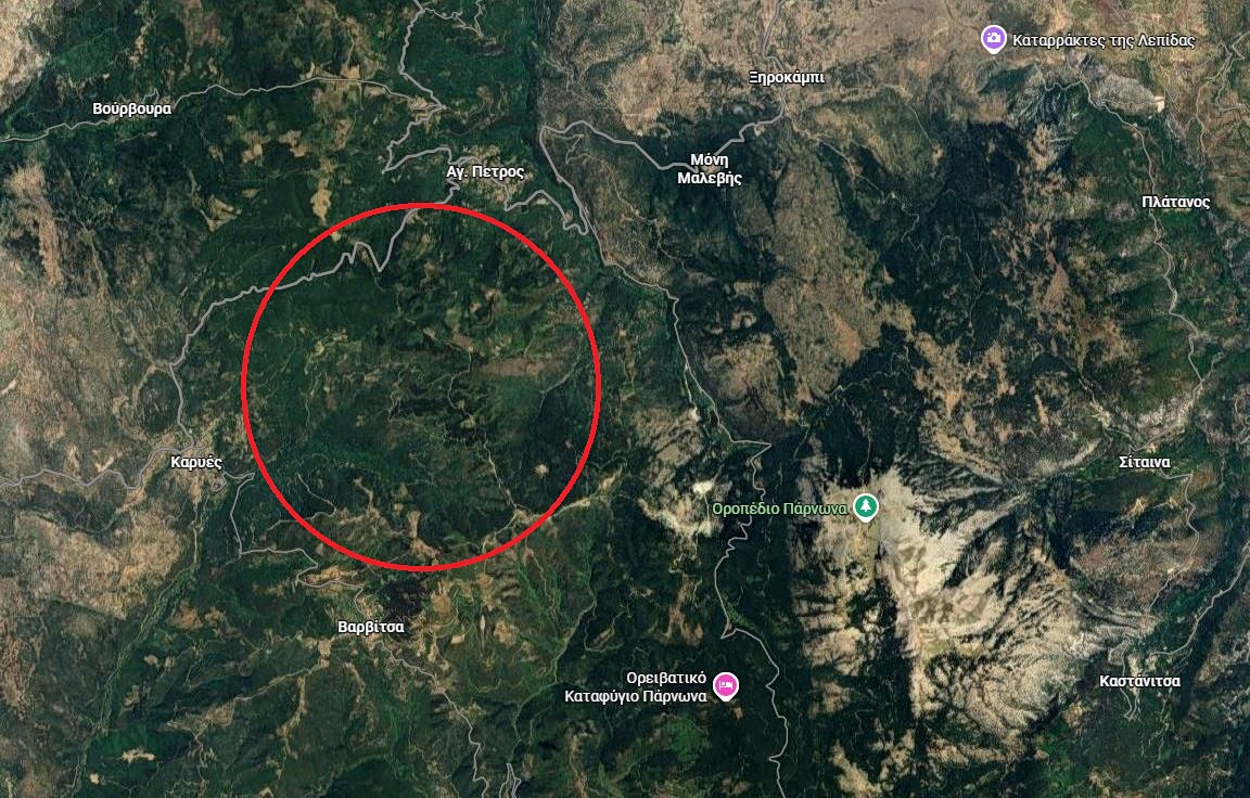 Σε εξέλιξη βρίσκεται από το απόγευμα φωτιά σε δασική έκταση στον Πάρνωνα στα όρια των νομών Λακωνίας και Αρκαδίας.