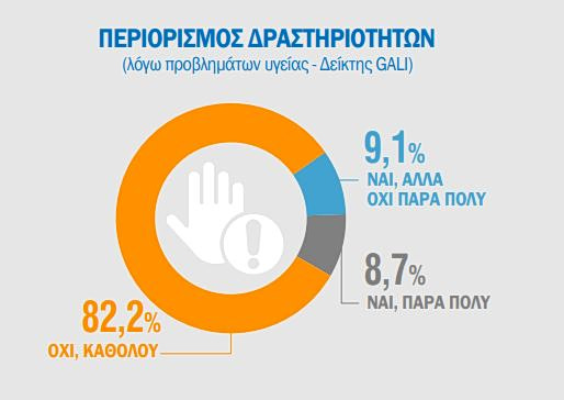Σχεδόν οι δύο στους δέκα αναγκάζονται λόγω προβλημάτων υγείας να περιορίσουν συνήθεις δραστηριότητες, για διάστημα έξι μηνών ή περισσότερο. Περίπου οι μισοί εξ αυτών υπόκεινται σε πολύ σοβαρούς περιορισμούς λόγω προβλημάτων στην υγεία τους, είτε εκ γενετής είτε λόγω ατυχημάτων-τραυματισμών.
