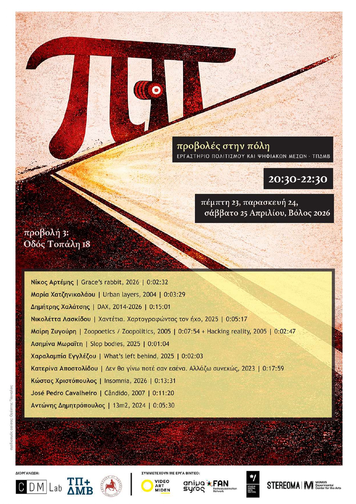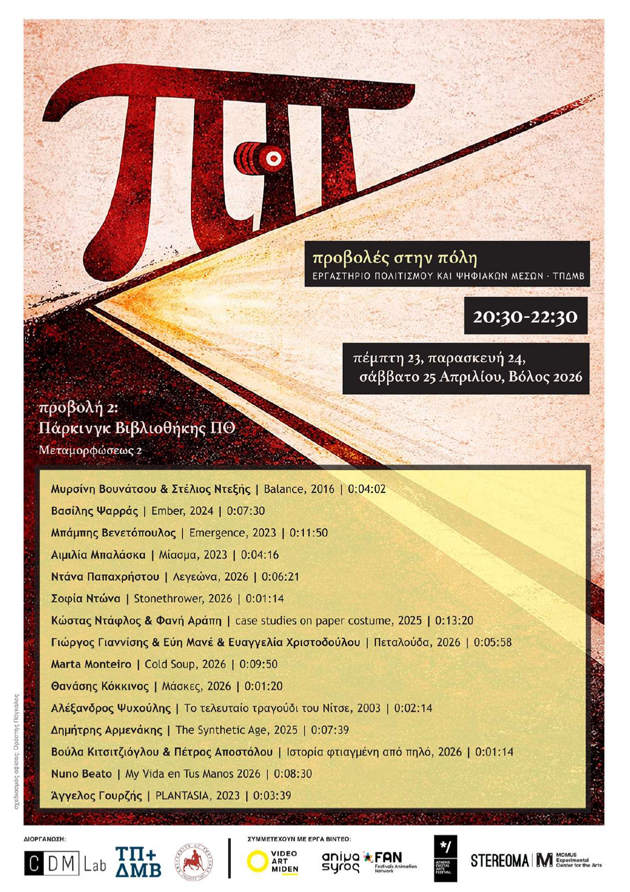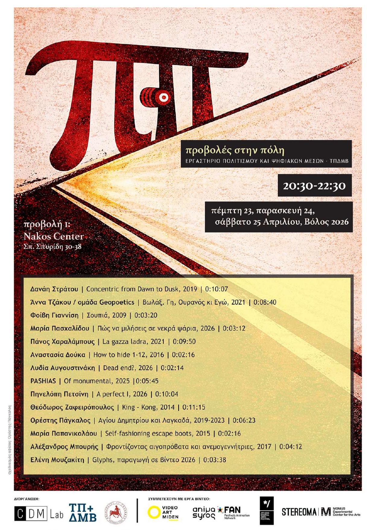 Προβολές στην πόλη. Βόλος Πέµπτη 23 – Παρασκευή 24 – Σάββατο 25 Απριλίου 2026, 20:30–22:30