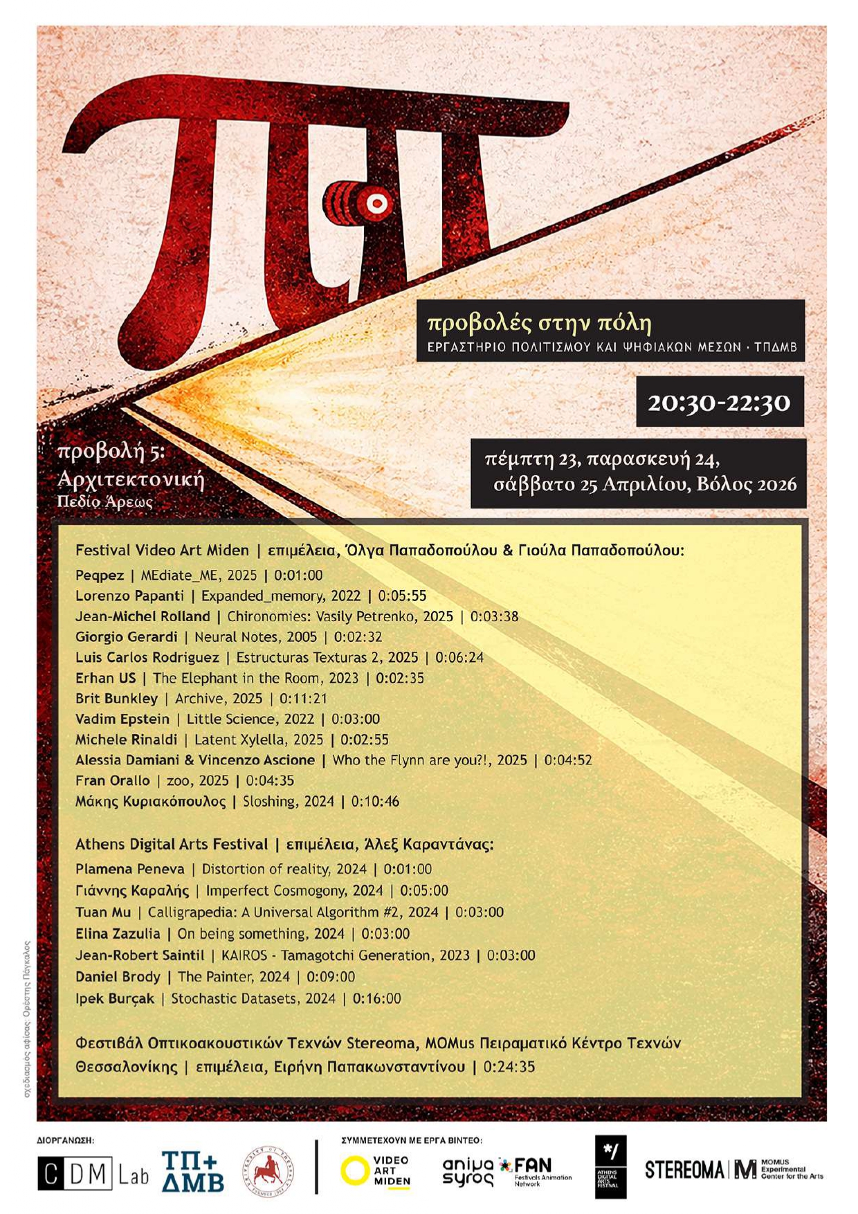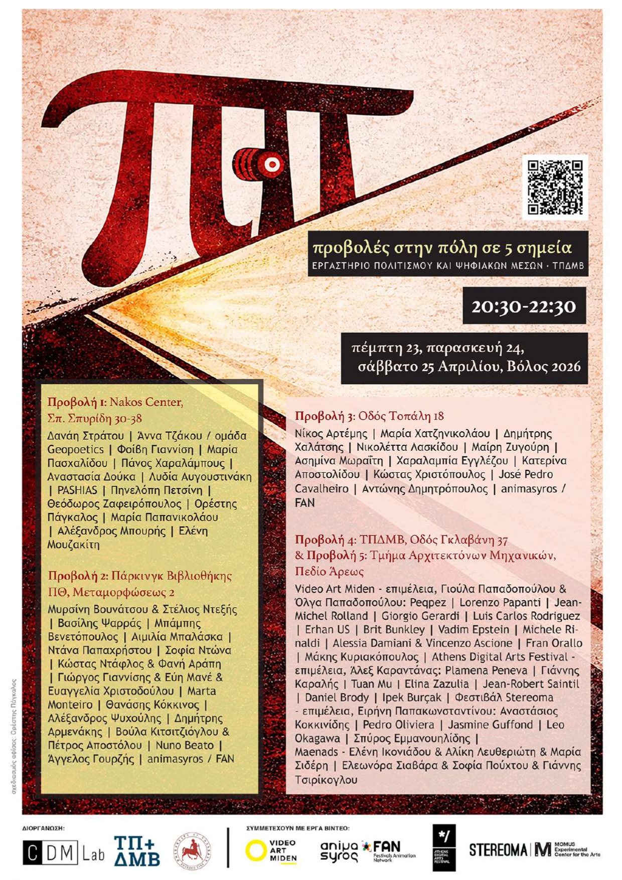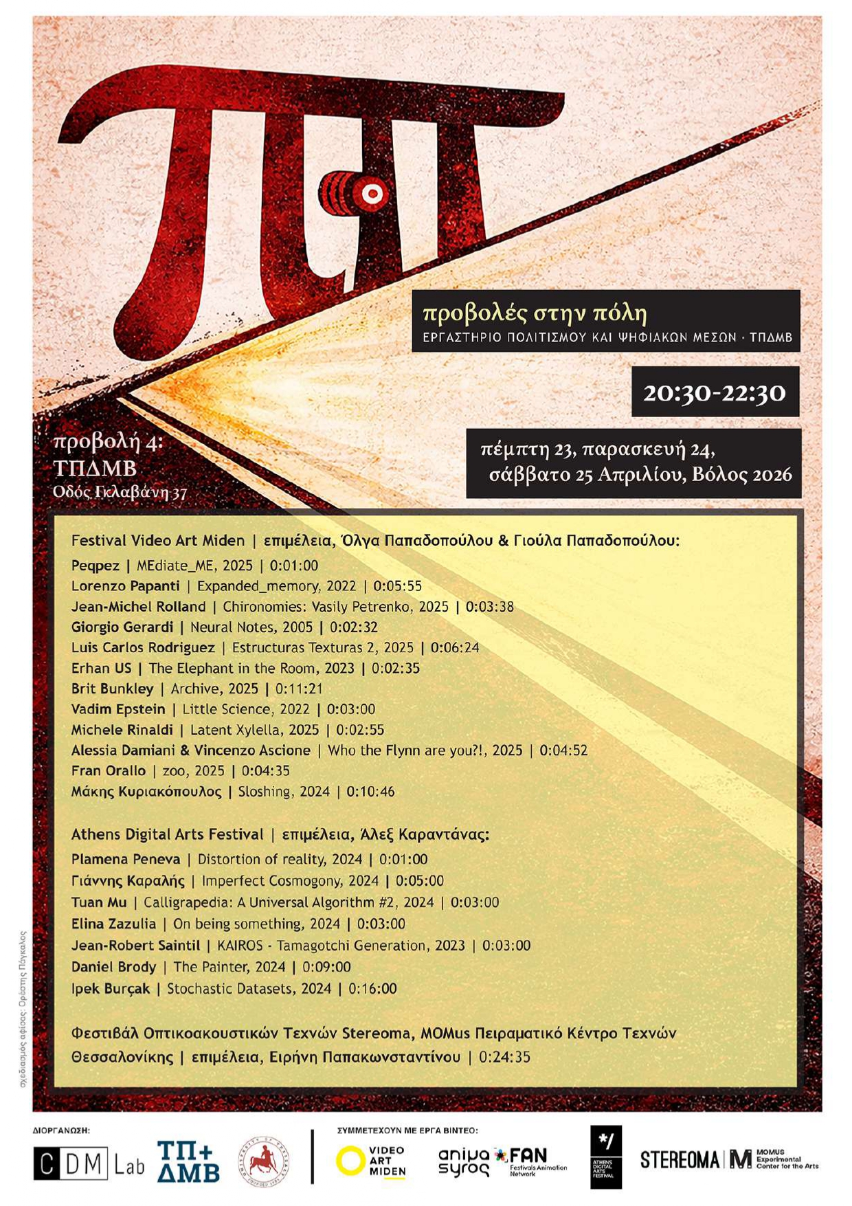 Προβολές στην πόλη. Βόλος Πέµπτη 23 – Παρασκευή 24 – Σάββατο 25 Απριλίου 2026, 20:30–22:30