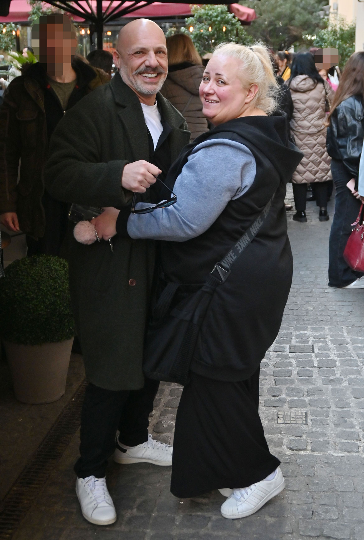 Οι δύο καλλιτέχνες, που τους συνδέει στενή φιλία εδώ και χρόνια, εμφανίστηκαν ιδιαίτερα ευδιάθετοι, με χαμόγελα και χαλαρή διάθεση, απολαμβάνοντας μια αυθόρμητη βόλτα στην πόλη.