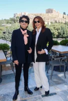Η Μιμή Ντενίση έδωσε το «παρών» με ένα κομψό και διαχρονικό σύνολο, επιλέγοντας μαύρο σακάκι σε συνδυασμό με λευκό πουκάμισο και ανοιχτόχρωμο παντελόνι, δημιουργώντας ένα polished αποτέλεσμα με έντονο classic χαρακτήρα. Το look της ολοκληρώθηκε με statement κοσμήματα και γυαλιά ηλίου, προσθέτοντας μια σύγχρονη πινελιά.